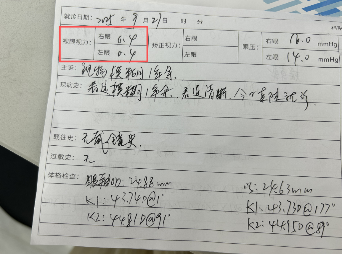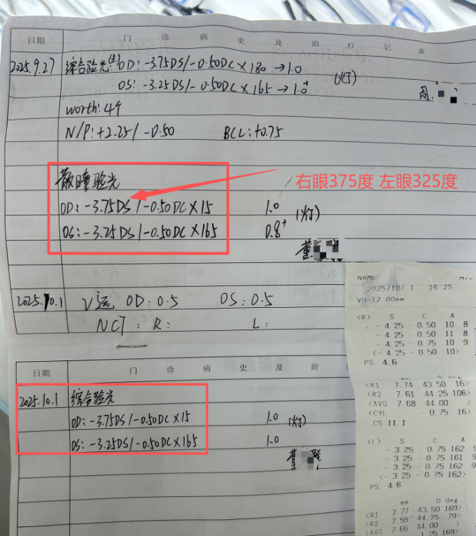 然而,科学的诊断数据是客观而无情的。经过医院全面的医学验光,尤其是关键的“真假性近视”鉴别诊断,结果显示:陈同学并非简单的假性近视,而是双眼真性近视,右眼高度数已达375度。